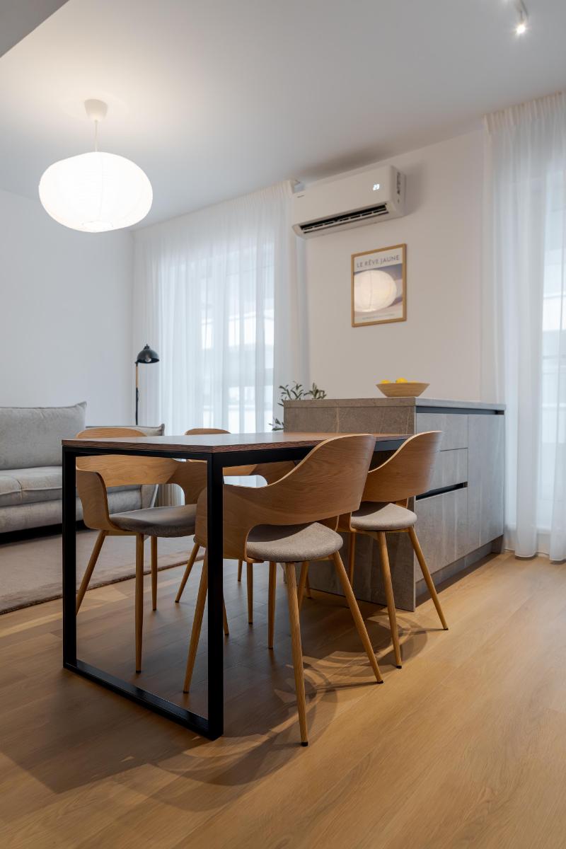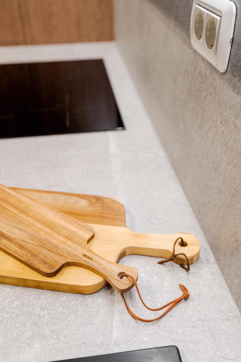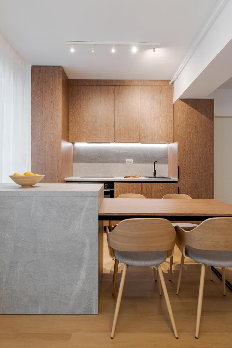 Rezultatul este o bucătărie contemporană, personalizată în detaliu, unde fiecare element contribuie atât la funcționalitate, cât și la crearea unei atmosfere calde și primitoare.