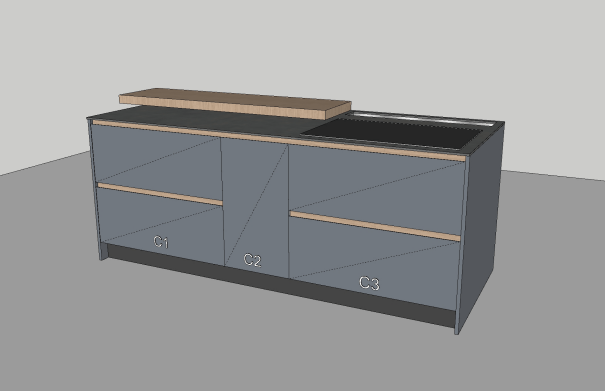 - Fronturi baza, coloane, laterale vizibile: MDF Vopsit 1 fata NCS S 7502 B (gri inchis, antracit) mat, 18mm;