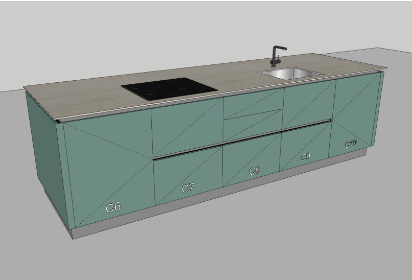 Insula de bucătărie verde Nordic este o piesă statement, concepută pentru interioare moderne, aerisite și elegante, inspirate din stilul nordic. Nuanța verde nordic mat aduce un plus de naturalețe și calm spațiului, fiind ușor de integrat atât în bucătării minimaliste, cât și în amenajări contemporane sau scandinave.