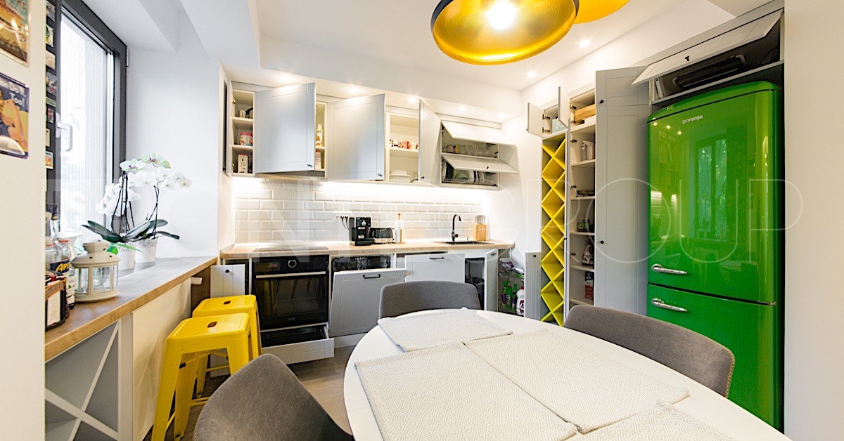 Când începem să pregătim designul unei bucătării pe comandă punem întotdeauna în centrul atenției rutina, obiceiurile și nevoile clienților noștri pentru că ne dorim ca rezultatul final să fie o combinație perfectă între calitate, funcționalitate și design. Acest obiectiv l-am urmărit și în cazul bucătăriei Muse – o bucătărie deschisă care îți fură privirea din prima secundă. Petele de culoare sunt cu siguranță un element care atrag – verdele puternic al frigiderului sau polițele în X din corpul deschis, înalt – însă bucătăria atrage prin mai mult de atât.