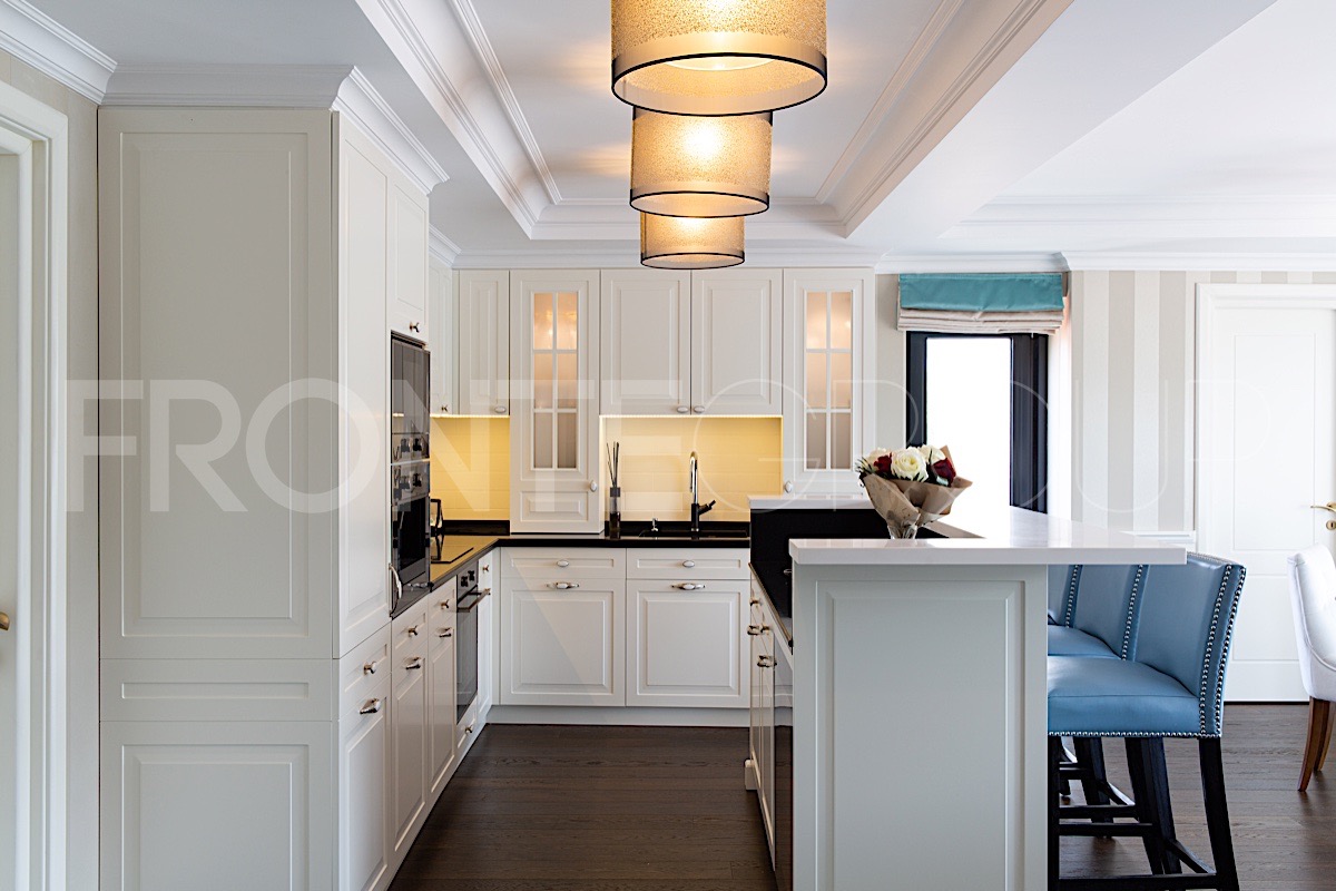 Fronturile corpurilor suspendate sunt realizate, ca și fronturile corpurilor de bază, din MDF vopsit mat, cu frezare clasică. De asemenea, corpurile suspendate prezintă frezare specială, făcuta pentru sistemul de iluminat led.